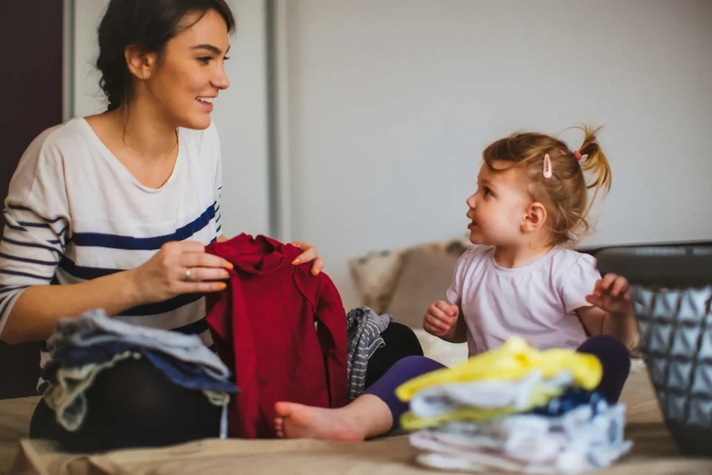 Becoming independent means taking ownership of their space and belongings. Involve your child in folding and putting away clothes, show them how to make their bed, and as with all the spaces in your home, show your children that everything has a place – and cleaning up is part of learning and play.