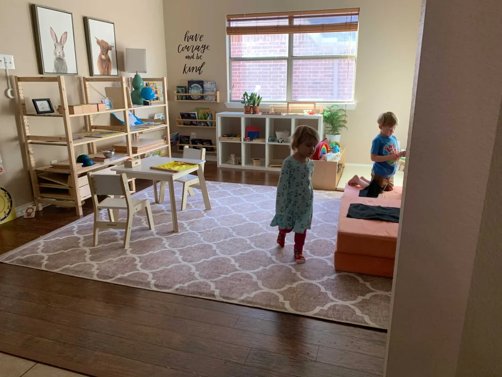 It’s essential to remember that the Montessori experience isn’t limited to a room for learning. Your child doesn’t stop learning and exploring when they put a book back on the shelf or clean up their art supplies. The Montessori experience is a whole-home experience – from the kitchen to the bathroom, from the bedroom to the living room.
